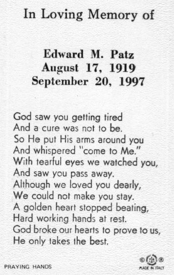 | Parents of Edward Martin Patz, Sr.: |
