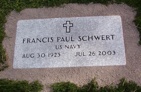 | Francis Paul Schwert was born in Buffalo, NY, on August 30, 1923. He attended Blessed Trinity School and Seneca Vocational High School. Fran served in the U.S. Navy during World War II as an electrician's mate second class on the USS Yosemite, a destroyer tender.